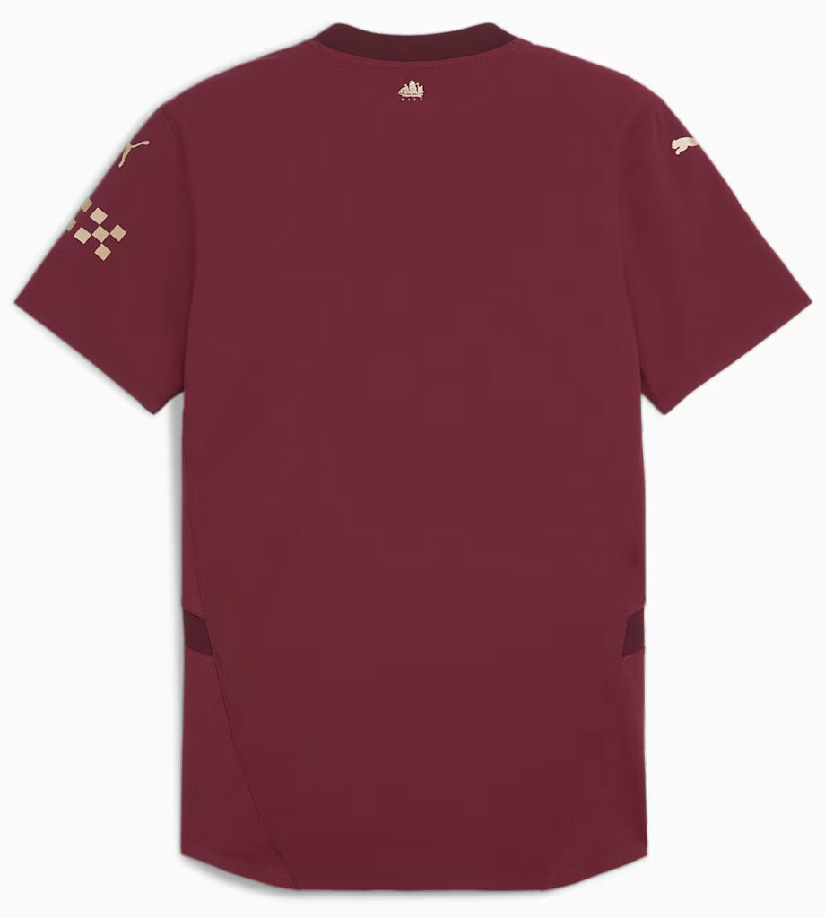 2024-25新サードユニフォームは、バーガンディ(ワインレッド)を基調としたデザインが登場。大胆に配したグラフィックはエンブレムの帆船を描いている。決して止まることのないクラブの過去、現在、未来を表すシンボルに敬意を表したものだ。