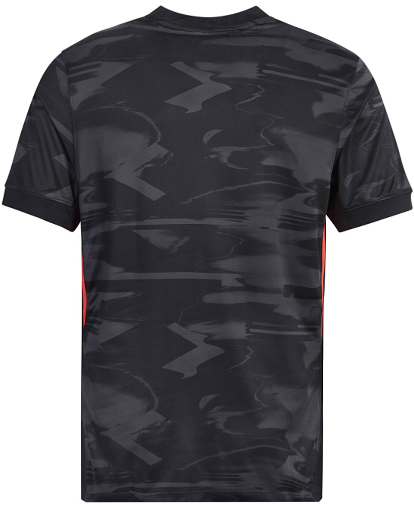 2024-25新サードユニフォームは、ブラックとグレーでカモフラージュ柄のような模様を描く個性的なデザイン。エンブレムや胸スポンサーロゴはレッドで統一し、スタイリッシュだがどこか威圧的な印象を与える。