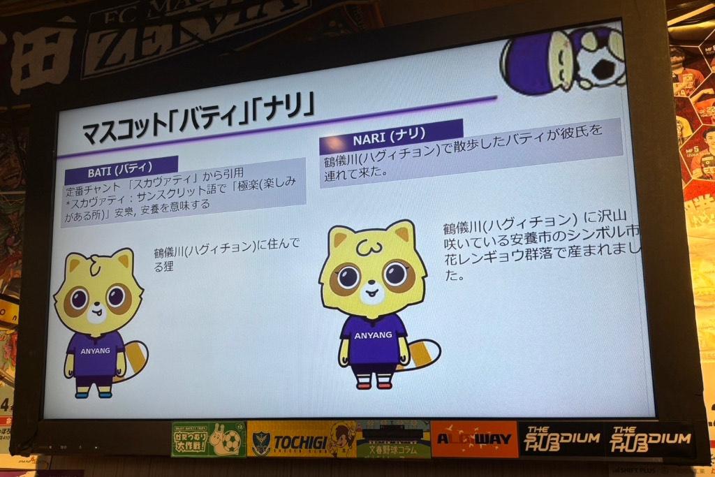 FC安養のマスコットキャラクターであるバディとナリは、実際に安養市を通る鶴儀川(ハグィチョン)で発見されたタヌキがモチーフになったそうで、ナリは生まれた場所も設定してある徹底ぶりだ。