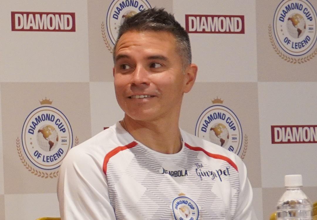 じゅんいちデビッドソンの登場に、童心に帰ったような表情も。日本サッカーの印象は「日本のサッカーの情報はあまり知らないけれど、大事なのはこうやって日本に来られて、日本人の温かさと、あとファンの人たち熱狂ですね、そういうのを感じることが大事」とコメント。