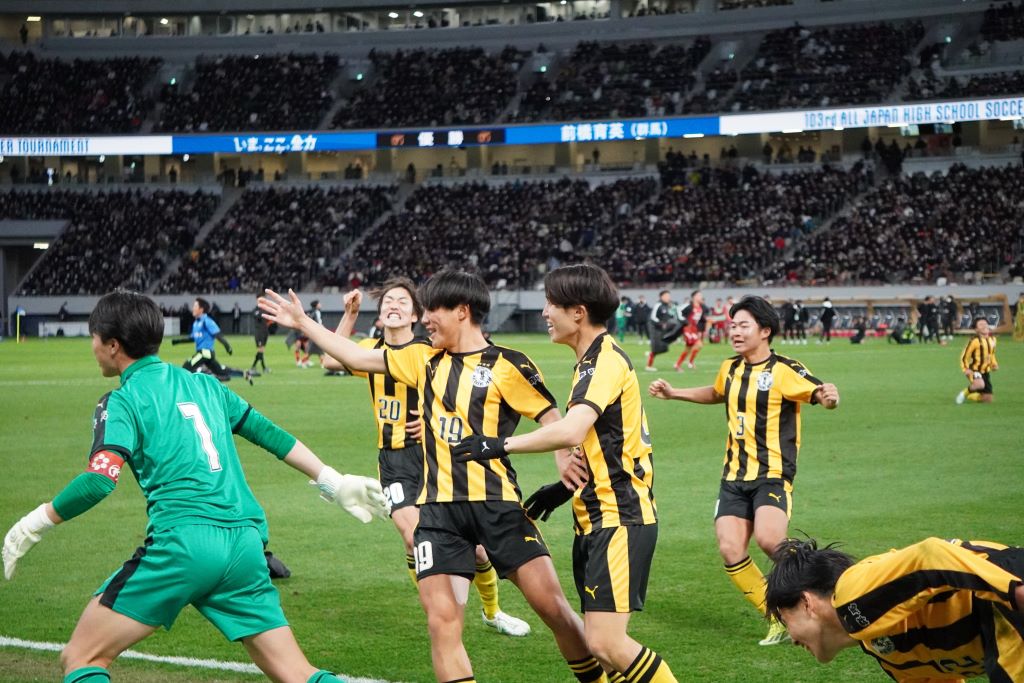 今大会は接戦続きだった。初戦の米子北高戦、準決勝の東福岡高戦は2点差で勝利するも、2回戦の愛知工業大名電高戦はPK戦に突入し、3回戦の帝京大可児高戦、準々決勝の堀越高戦は1点差と僅差で勝利を収めた。そして決勝では前半12分に失点を許し、同31分にMF柴野快仁(はやと、2年-ウイングスSC)が頭で同点弾を挙げて1-1にするも、延長戦で決着がつかなった。