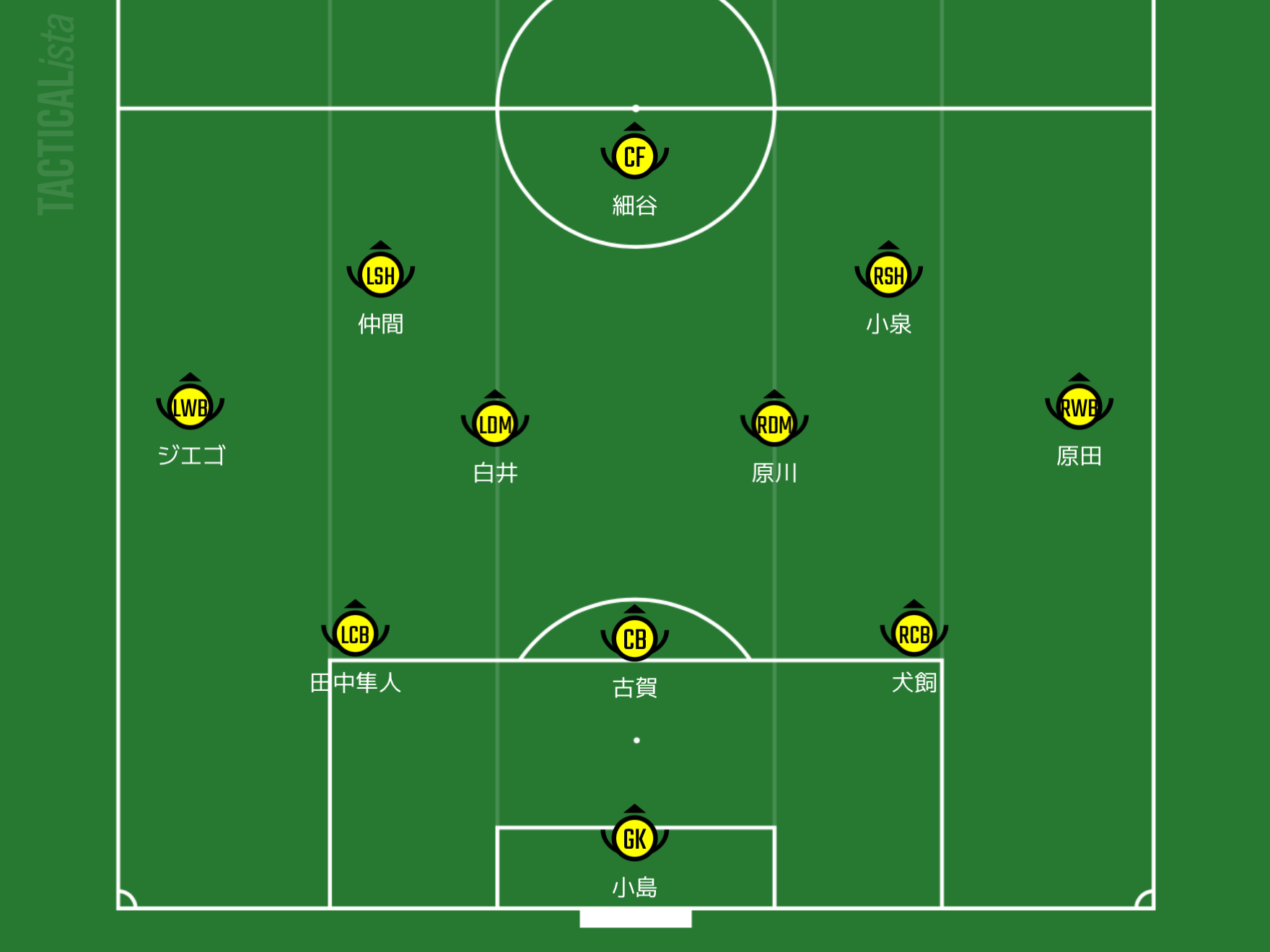 冬の移籍で大エースのマテウス・サヴィオを失ったことはもちろん大打撃なのですが、小島亨介、仲間隼斗、杉岡大暉、原田亘、久保藤次郎、渡井理己、小泉佳穂、原川力と実力者を獲得しました。