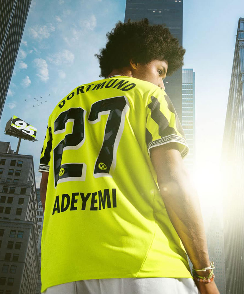 キービジュアルの背景には「95」の数字が見えるが、これは今作のデザインが1994-95モデルをモチーフにしていることを示している。ドルトムントがブンデスリーガを初優勝した記念すべきシーズンだ。