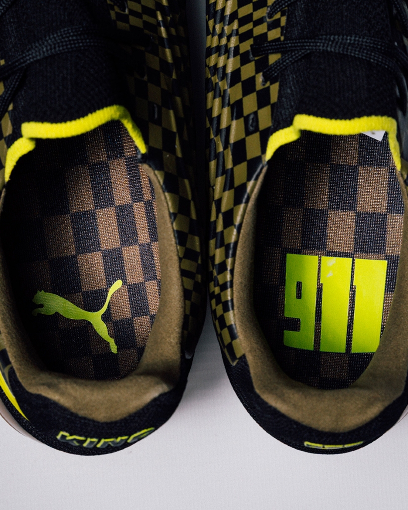 過去にもリリースされている“キング x ポルシェ”のコラボスパイクは、ポルシェの象徴的なシート生地からインスピレーションを得た「パシャパターン」をデザインに採用。