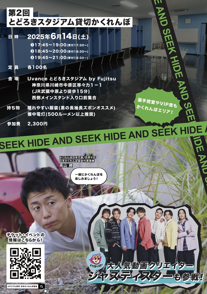日本かくれんぼ協会は14日、6月14日(土)に神奈川県川崎市のUvance とどろきスタジアム by Fujitsuを貸切り、総定員300名のかくれんぼイベントを開催すると発表。参加者の募集を開始した。