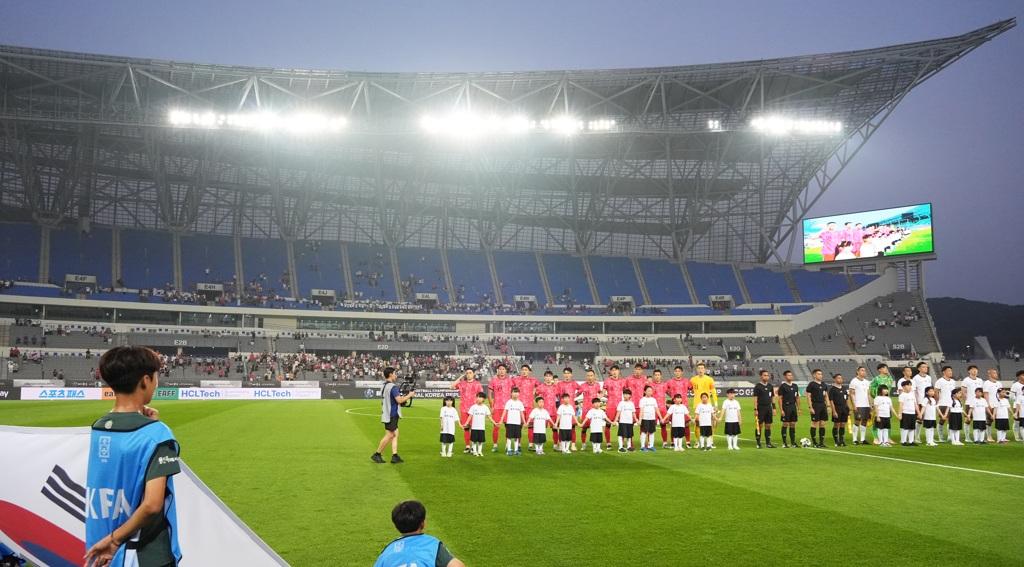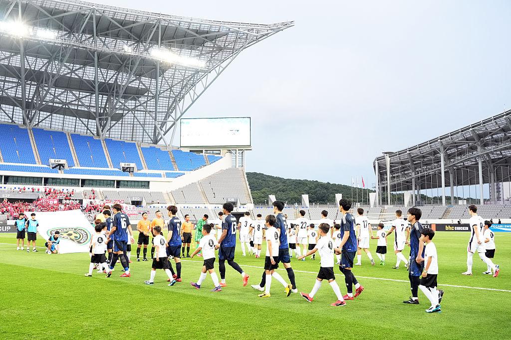 試合は京畿道龍仁市の龍仁ミルスタジアムで19時24分にキックオフされたが、スタンドには空席が目立った。