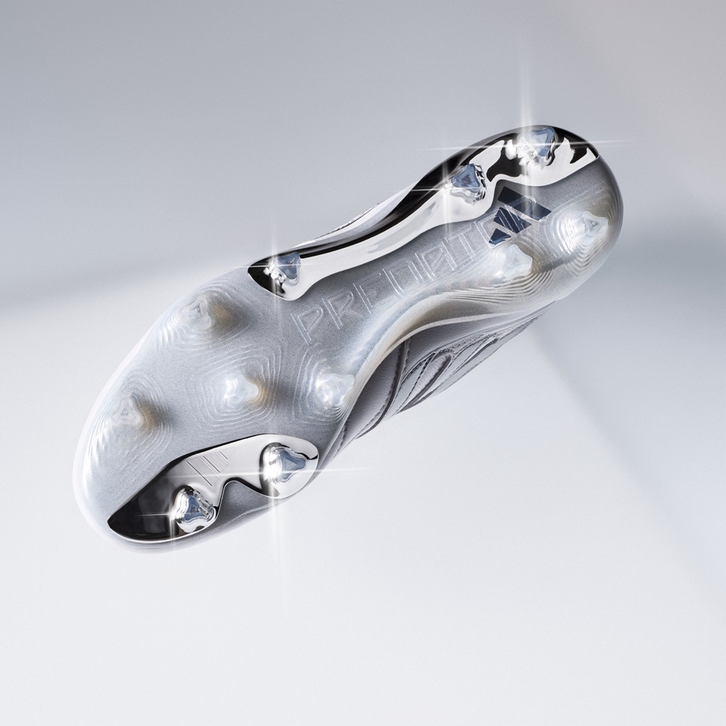 アイコニックなスパイクへのオマージュである今回の限定モデルには、折り返し仕様のシュータンや、前足部のリブ仕上げのラバーパッドなど、クラシックな『プレデター プレシジョン』のアッパーのディテールがすべて搭載。