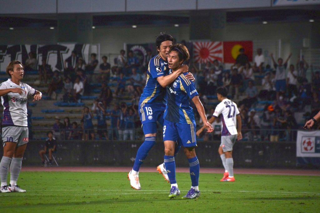 6月11日に行われた天皇杯2回戦の京都産業大戦(2○1)以来となるホームでのゴールを奪ったストライカーは、平日ナイターの試合に集まったサポーターの元へ駆け寄り、喜びを分かち合った。