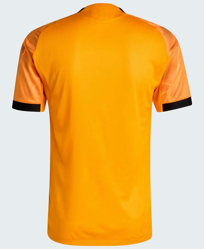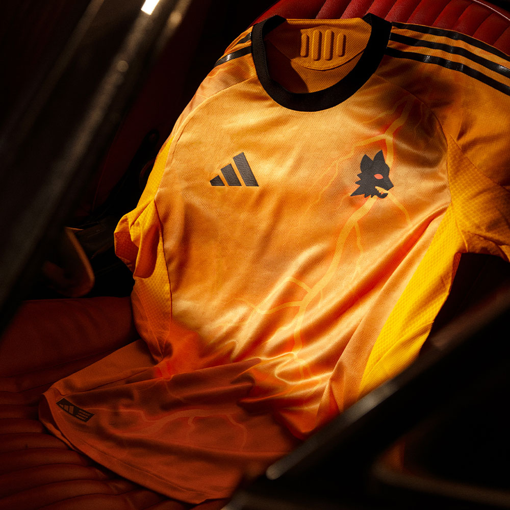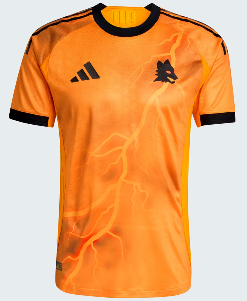 今作の特徴は、アウェイとしては史上初のオレンジ色と、左肩から右裾にかけて切り裂くような稲妻グラフィック。これはどちらもローマ神話に基づく要素と考えられる。