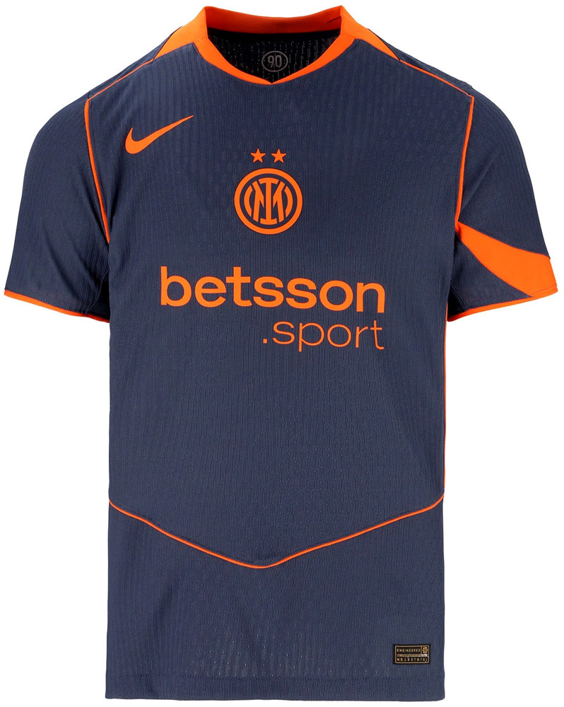 だが今回のブルーは、どちらかといえば2004-06の2シーズンで使用したボーダー柄のサードユニフォームの色に近いかもしれない。1998-99シーズン以降“Nike一筋”のインテルは、その当時Total 90のオリジナルを使用している。
