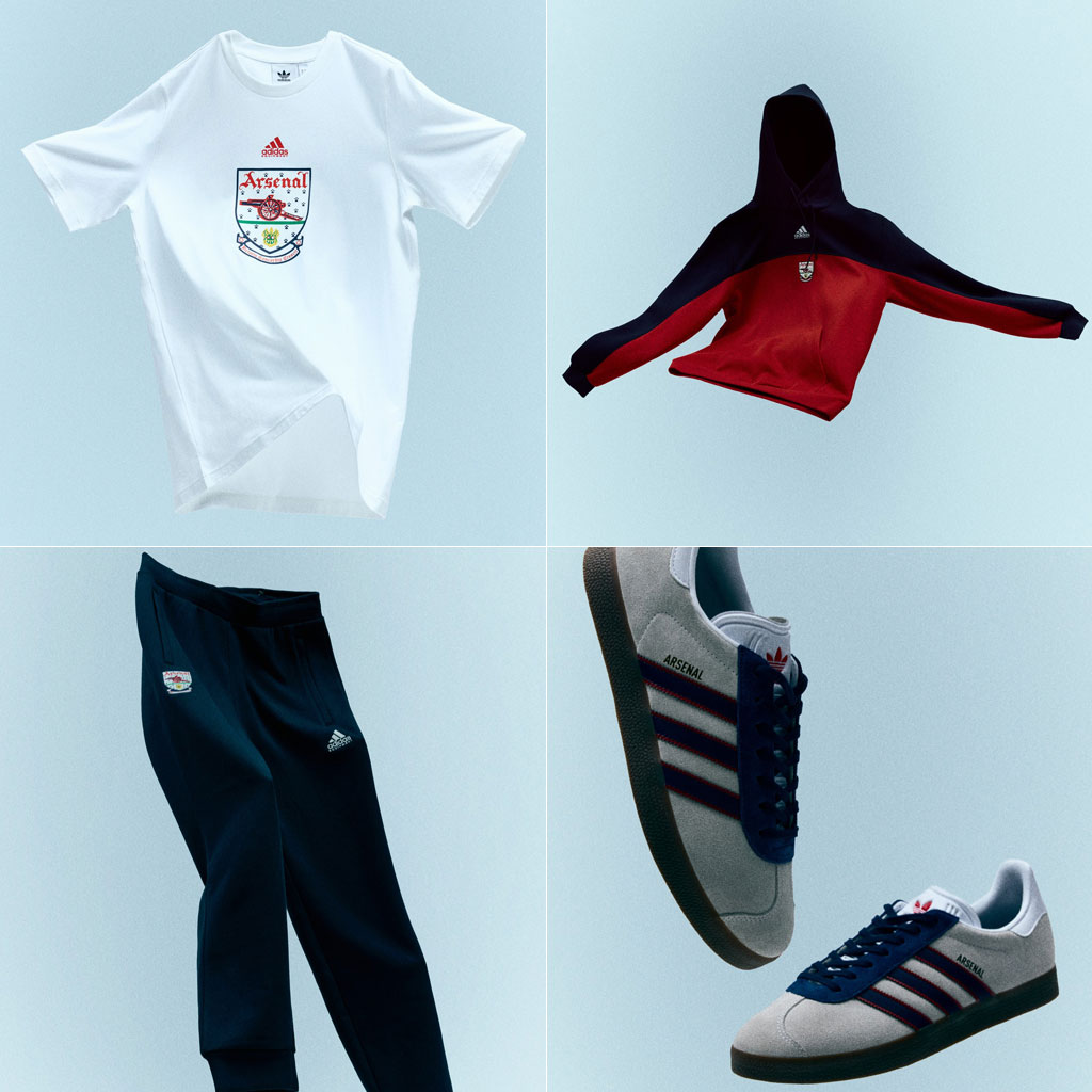 本コレクションは復刻ユニフォームの他に、Tシャツ、パーカー、スウェットパンツ、そしてadidasの人気スニーカー「Gazelle(ガゼル)」の特別仕様も登場。Gazelleは側面のスリーストライプスが、ユニフォームのそれと同じカラーだ。