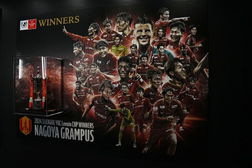 リーグ杯王者名古屋のラッピングはレジェンドGKランゲラックが中心